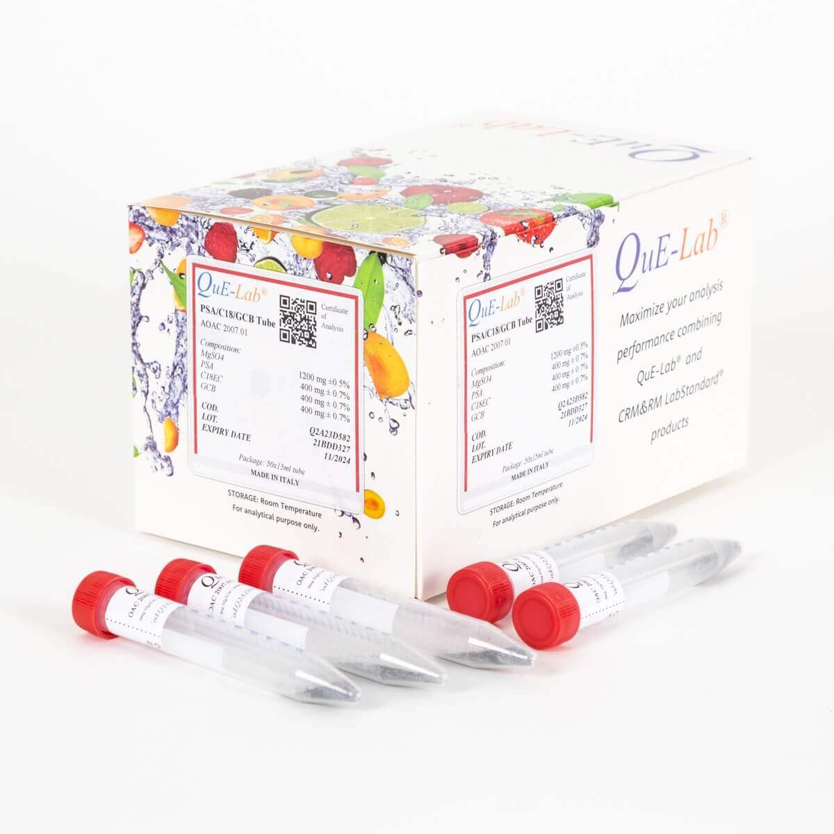QuE-Lab® – Kit Clean-up A.O.A.C 2007.01 dSPE – 1200mg MgSO₄, 400mg PSA, 400mg C18EC, 400mg GCB Pkg. n. 50 Falcon 15 ml Prefilled