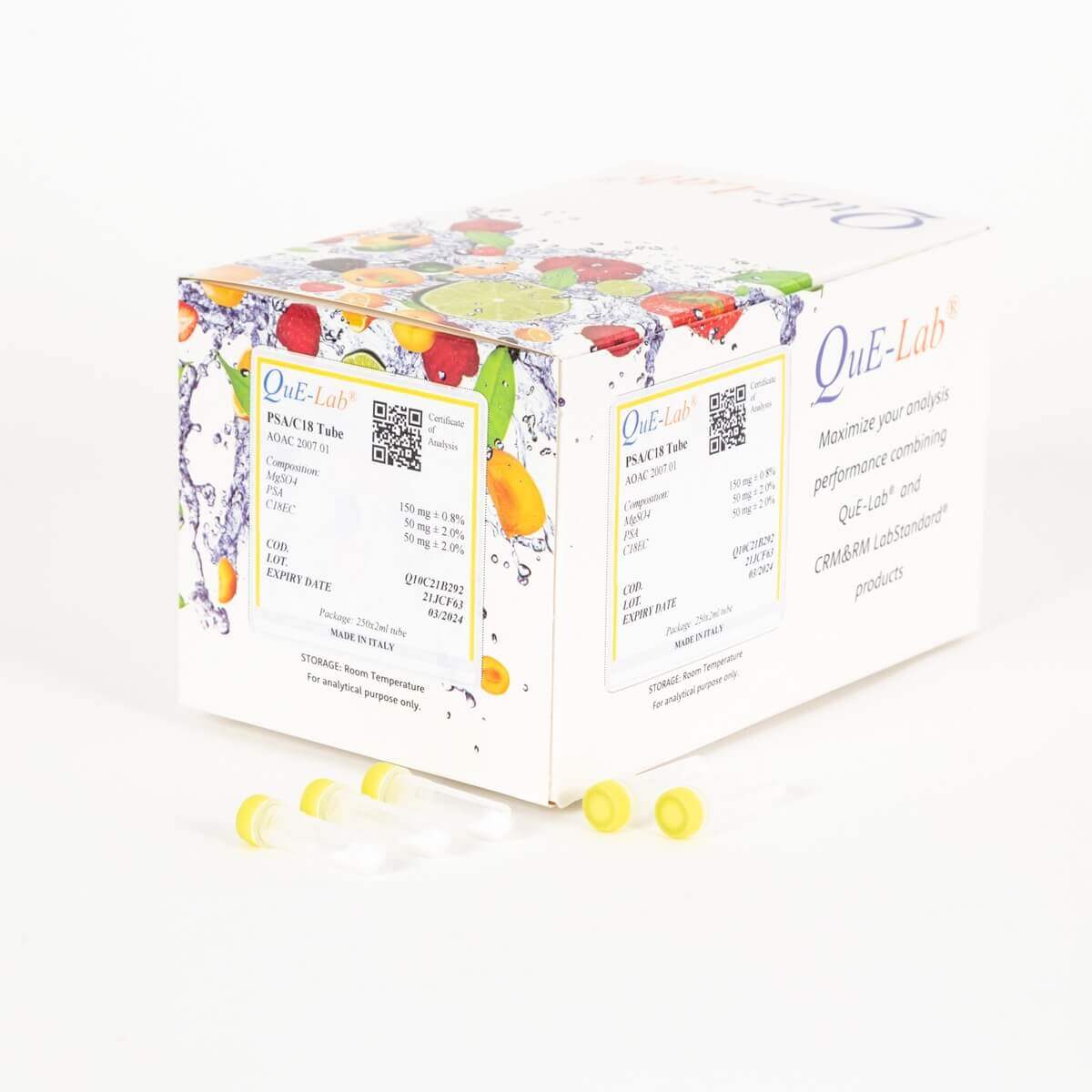 QuE-Lab® – Kit Clean-up A.O.A.C 2007.01 dSPE – 150mg MgSO₄, 50mg PSA, 50mg C18EC Pkg. n. 250 Falcon 2 ml Prefilled